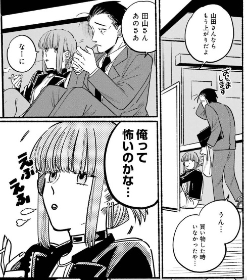 ピアスに革ジャン、チョーカーを身に着けた見た目が派手な彼女は、実は目当てのかわいい店員さんだったのです。しかし普段の店員姿とはあまりに恰好が違うため、佐々木さんは気づきません。タバコを吸う彼女は田山と名乗り、気がつかない佐々木さんをからかいながらも他愛のない世間話を楽しみます。