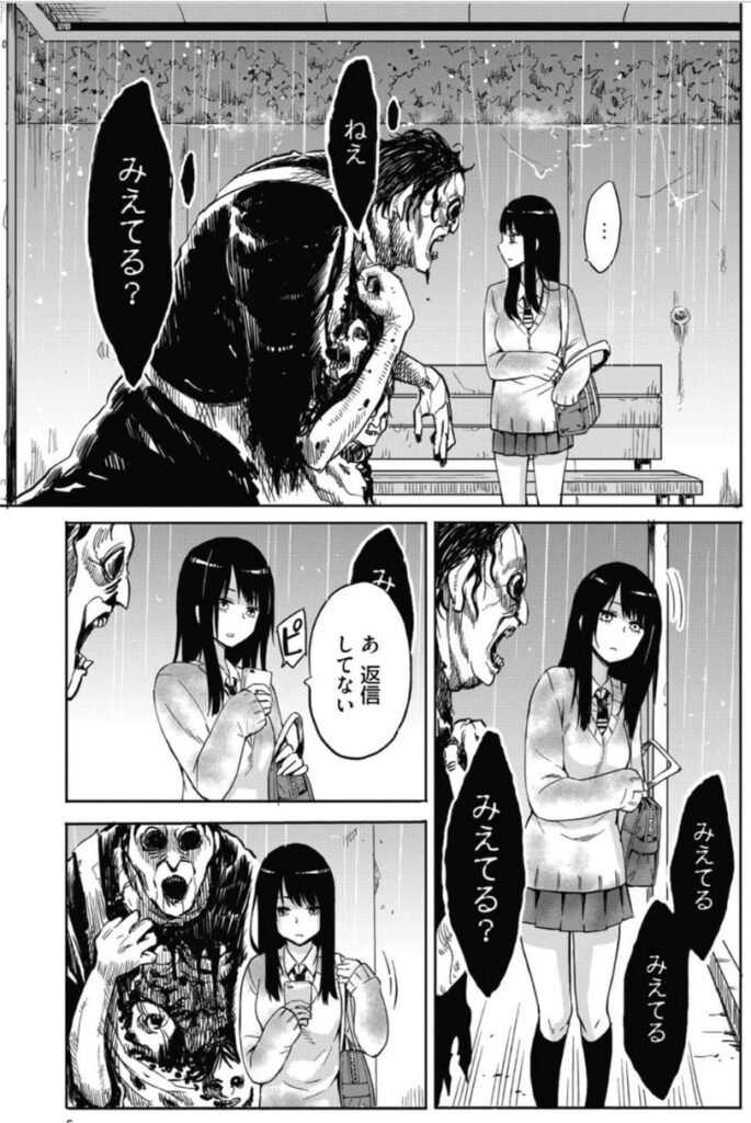 グロテスクな化け物が急に現れ、「ねぇ見える?」と問われたらどうしますか?私は確実にダッシュで逃げますね。化け物から逃げ切れる訳もなく追いつかれその後は、、、